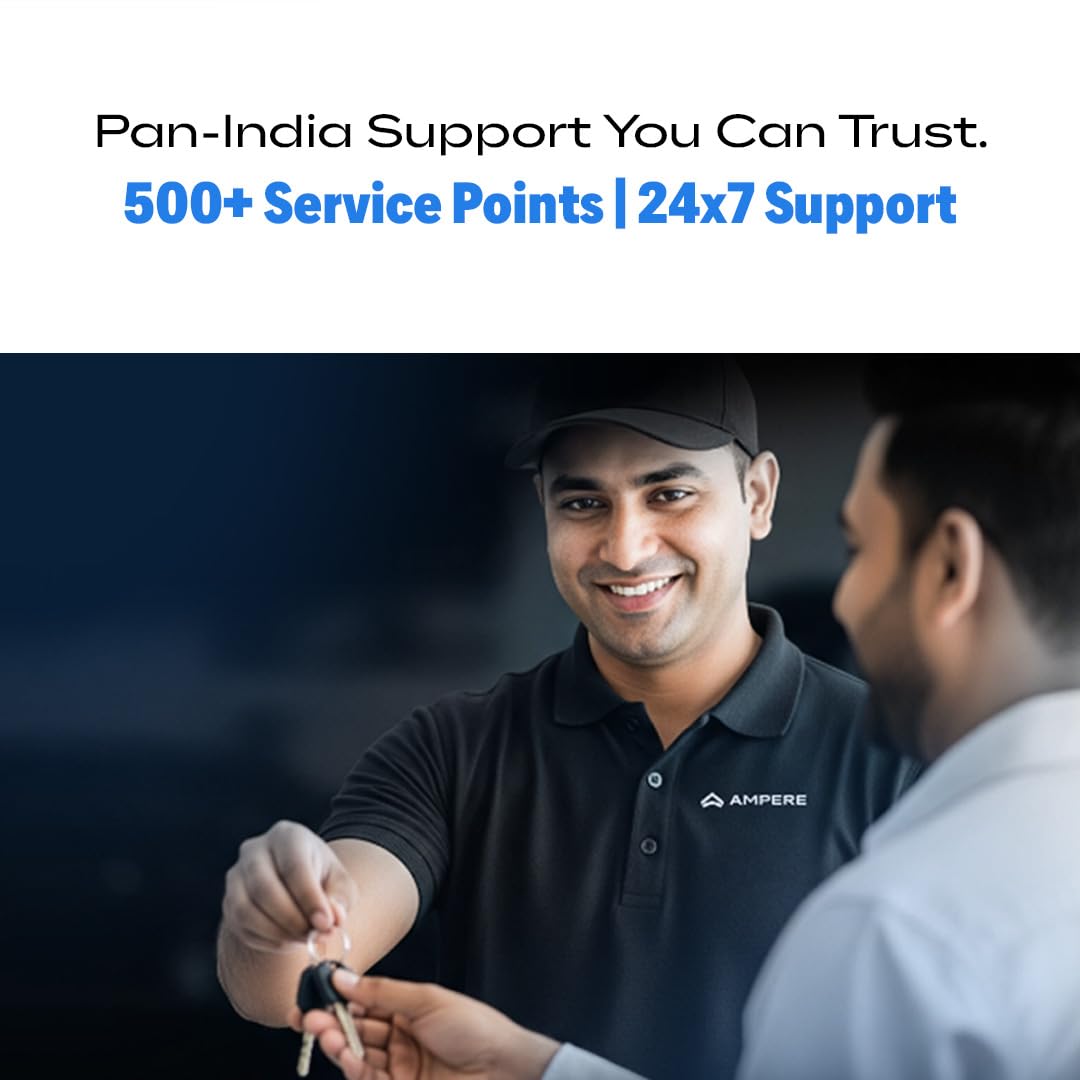 Service : Enjoy hassle-free ownership with Ampere Care’s pan-India support and 500+ service points.