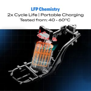- Battery: 1 Battery | Capacity 2.3 kwh | Charger Time: 5-6 hrs | Hub Motor | Ip67 Rated