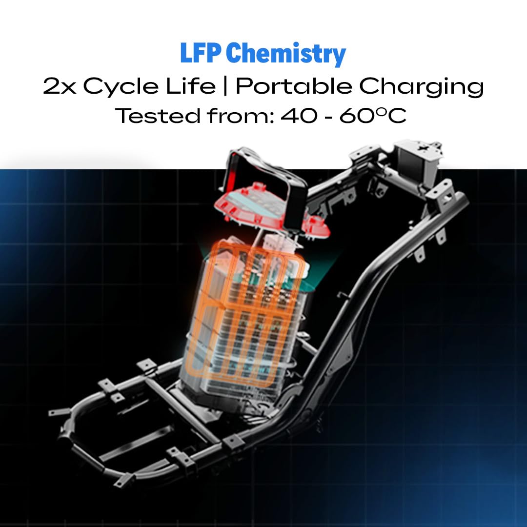 Battery: 1 Battery | Capacity 2.3 kwh | Charger Time: 5-6 hrs | Hub Motor | Ip67 Rated