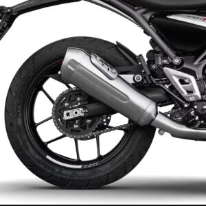 Design: Front Tyre – 110/70-17 Tubular | Rear Tyre – 140/70-17 Tubular | Wheel Type – Alloy Wheels | Front Brake – 300 mm Fixed Disc | Rear Brake – 230 mm Fixed Disc | Front Suspension – 43 mm Telescopic Fork, 140 mm Wheel Travel | Rear Suspension – Monoshock, 120 mm | Frame Type – Hybrid Spine/Perimeter, Tubular Steel, Bolt-on Rear Subframe
